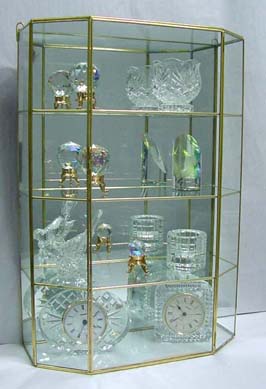 This beautifully designed Brass & Glass cabinet is 20 Inches Tall, 14 Inches wide, and 5 1/2 Inches Deep Front to Back in the center. This Flat top style top cabinet can be hung on the wall or it will also look good standing on a Tabletop, Dresser-Top or Shelf. This cabinet includes two brass rings so that it can be hung on most types of walls.