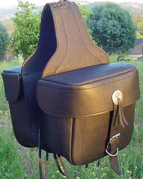 This is our smallest saddlebag. Our bag sets all come with an adjustable crossover yoke lays across the bike under the seat, so the set s do not require the use of a mounting bracket. The bag sets have leather straps attached to the backside - that can be tied to a a convenient part of the bike frame or a shock ring. Our craftsmen only use the thickest leather skins to make the bags, since the thin, flappy leather used by most other competitors and imitators may look nice, but it is NOT suitable for longterm use as saddlebag material. We make our bag sets out of leather that can take a pounding from gravel and errant rocks or other road debris without tearing open. Rocks bounce right off the leather we use, instead of leaving a gash. Are bags are handsewn one at a time by craftsmen who know better than to cut corners with cheap threads or other cost-saving gimmicks, that affect how long a bag set will last. Since they are handsewn, they have a rougher look than some of the cookie-cutter bags made of thinner leather, and they have immaterial imperfections that make hand-sewn bags unique. In other words, they don't look like a 'factory' bag you might find at Wallmart or K-Mart. There's some 'pretty' bags out there that will never last nearly as long as ours because they're made out thin leather that should only be use as jacket material. We sell 'pretty' bags made out of thin leather too; they're referred to as purses, and can be found in our purse section@